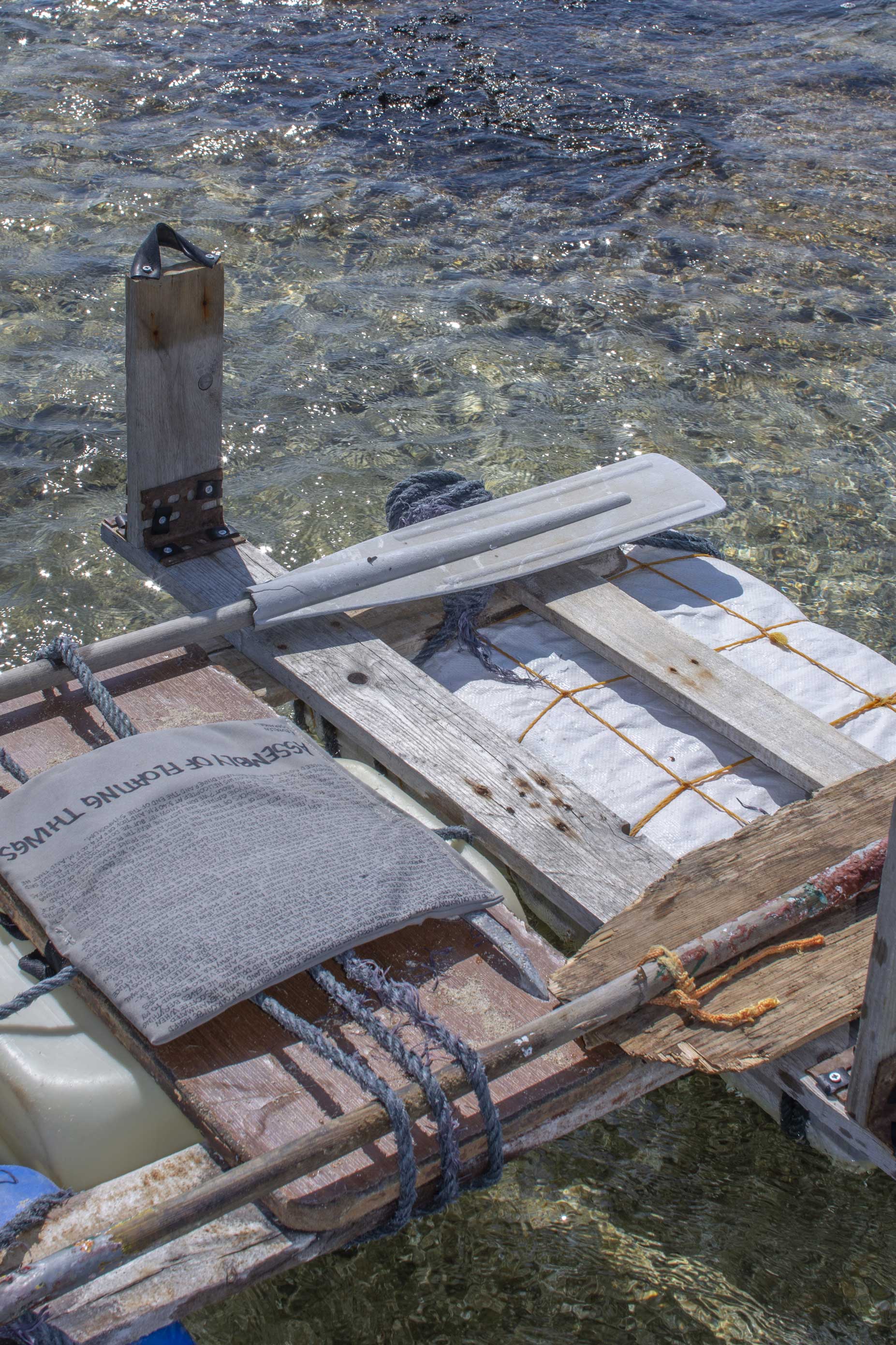 These pieces are composed exclusively of things I found on the beaches and along the paths during this one month residency on the island of Elafonisos. Basic hand tools like a cutter, pliers, metal saw, hammer, screw driver were used to build it. They are permanently installed in various places accessible to the public. On the wall of an abandoned shop in the village is displayed a map showing their location.