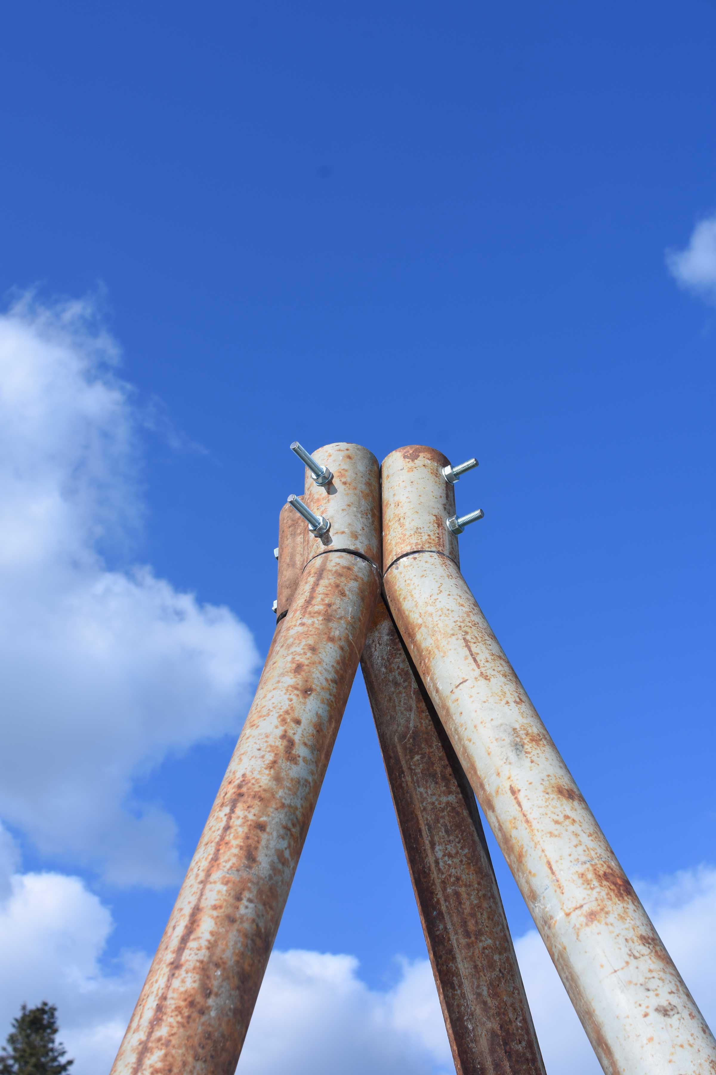 Arnaud Eubelen’s installations are often inspired by everyday objects such as furniture, lights or architectural forms (shelters, huts…). But although most of the installations suggest that they are functional, the use of them is often constrained or uncomfortable. The imperfect imitation of furniture or architecture, whose functions have been diverted or rendered unproductive, thus poses a humorous and ironic view of the human environment. Arnaud Eubelen’s practice, which is based on the reinterpretation of materials of industrial origin, can also be read as a commentary through the absurd on the artefacts of what is now called the Anthropocene.